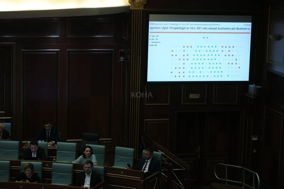 Kuvendi i Kosovës e ka miratuar Projektligjin për ndarjet buxhetore për vitin 2026. Buxhetin e kanë votuar deputetët e pushtetit ndërkohë që ata të opozitës kanë votuar kundër. Për kanë votuar 62 deputetë, kundër 36 dhe asnjë nuk ka abstenuar. Buxheti për vitin 2026 është paraparë të jetë 4 miliardë euro, prej të cilave 3.64 miliardë janë të hyra, ndërsa pjesa tjetër do të mbulohet me kredi dhe me deficit.
