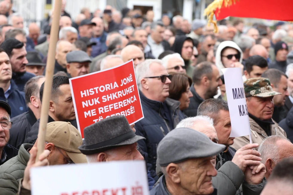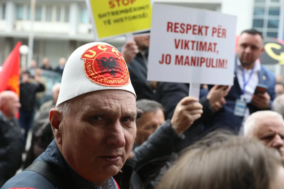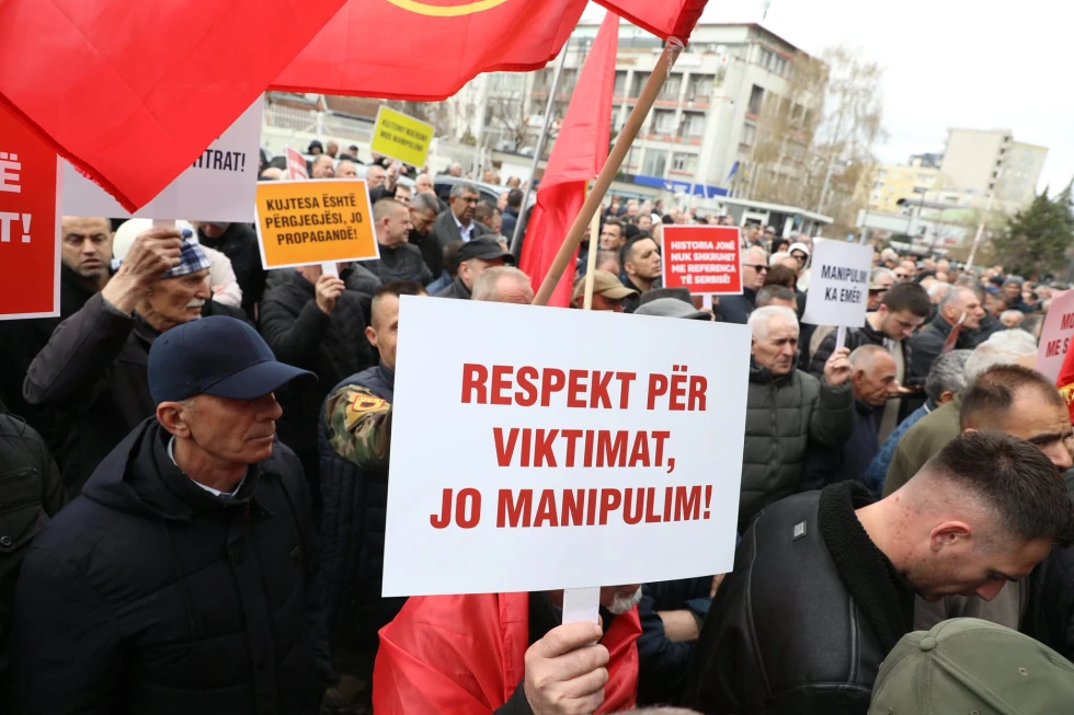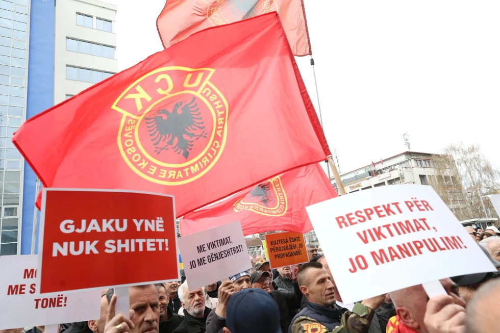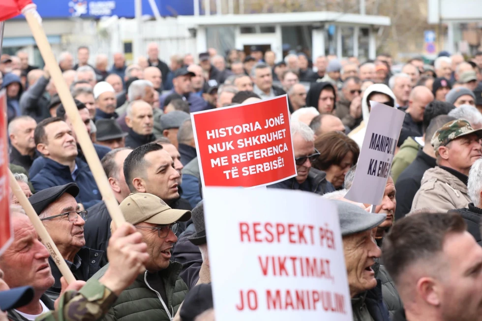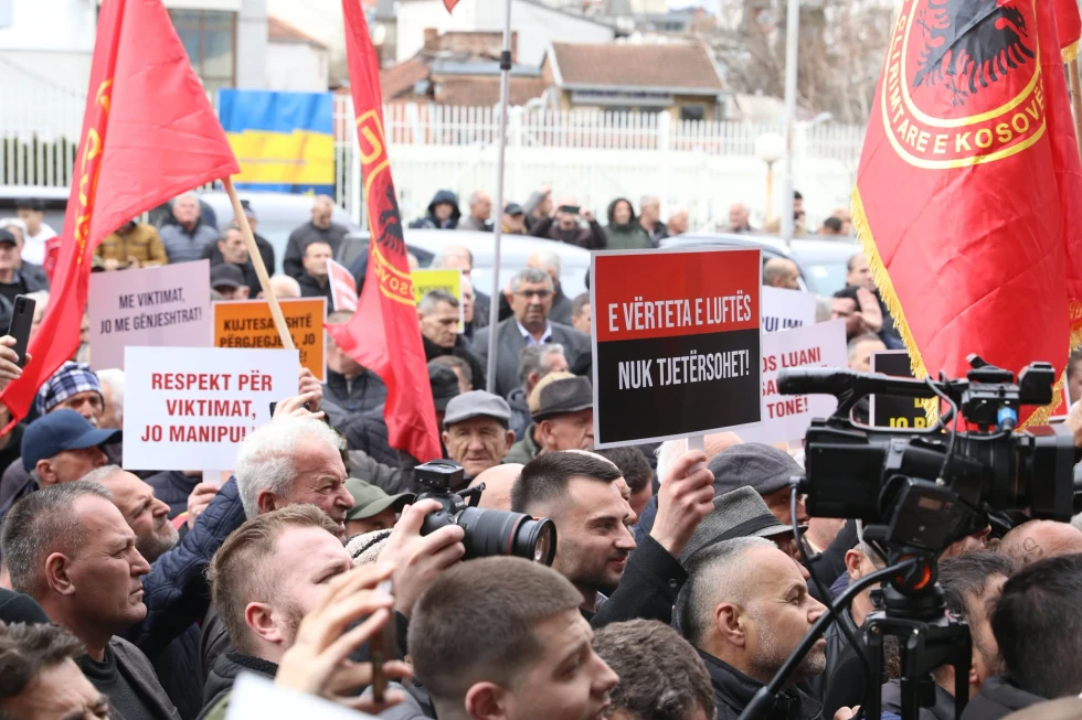 Në shenjë pakënaqësie për ekspozitën e cila pasqyroi të dhëna të pasakta për masakrat në Kosovë, veteranet e Ushtrisë Çlirimtarë të Kosovës kanë protestuar para ndërtesës së Kuvendit të Kosovës.