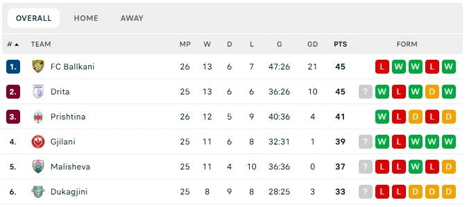 Prishtina fitoi 1:0 dhe tani i ka 41 pikë në vendin e tretë, katër më pak se Ballkani dhe Drita që janë lidere. Drita e ka një ndeshje më pak të luajtur. Kampionia e Kosovës të dielën luan në udhëtim ndaj Gjilanit.