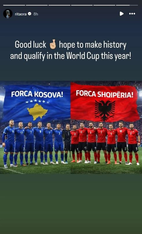 Letër lexuesit — pse po kërkojmë mbështetjen tuaj KontribuoKëngëtarja shqiptare me famë botërore, Rita Ora, ka bërë një postim në Instagram duke treguar përkrahje për kombëtaret e Kosovës dhe atë të Shqipërisë të cilat do të luajnë sot në gjysmëfinalen e plejofit kualifikues për Kupën e Botës 2026.